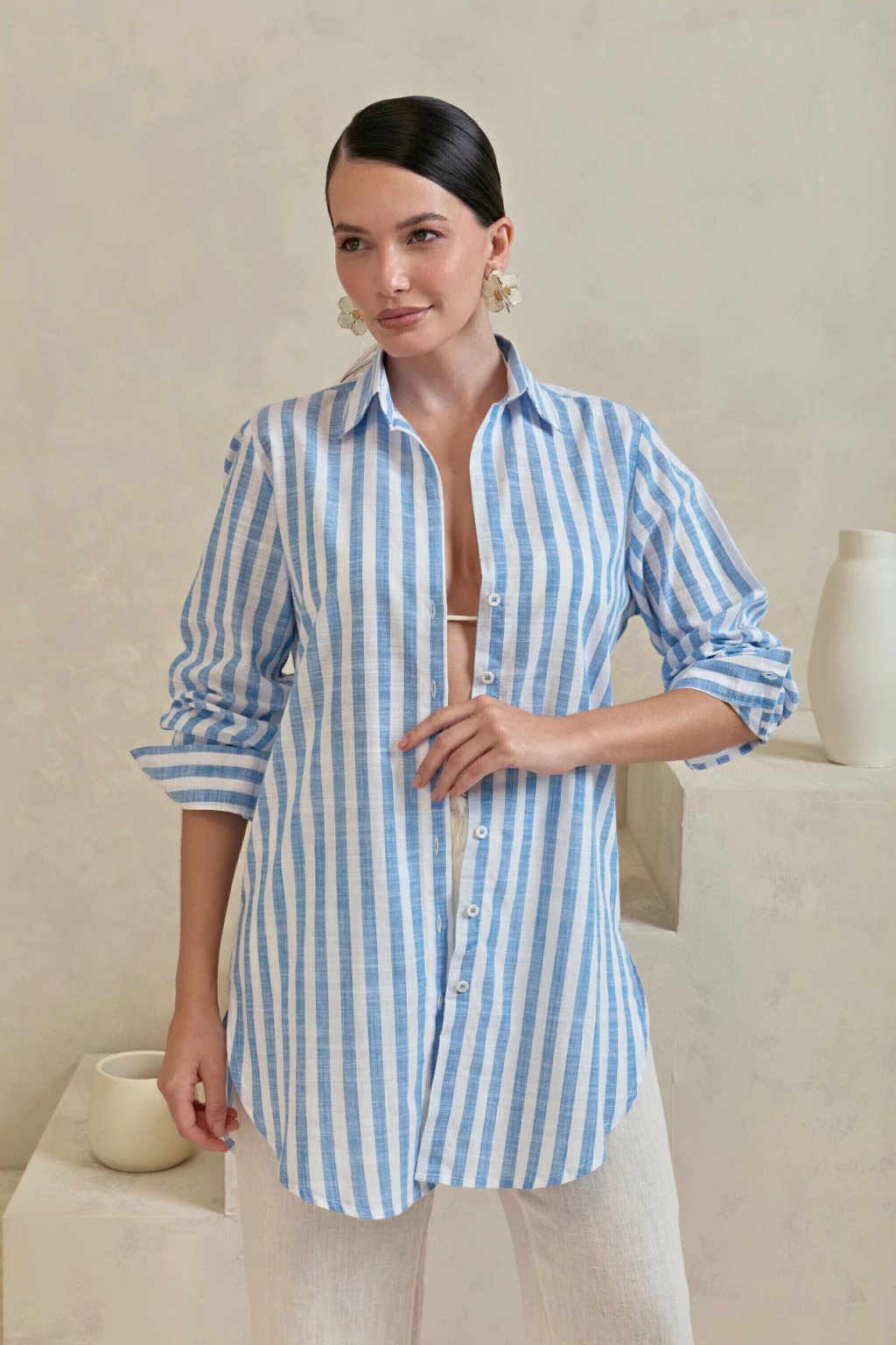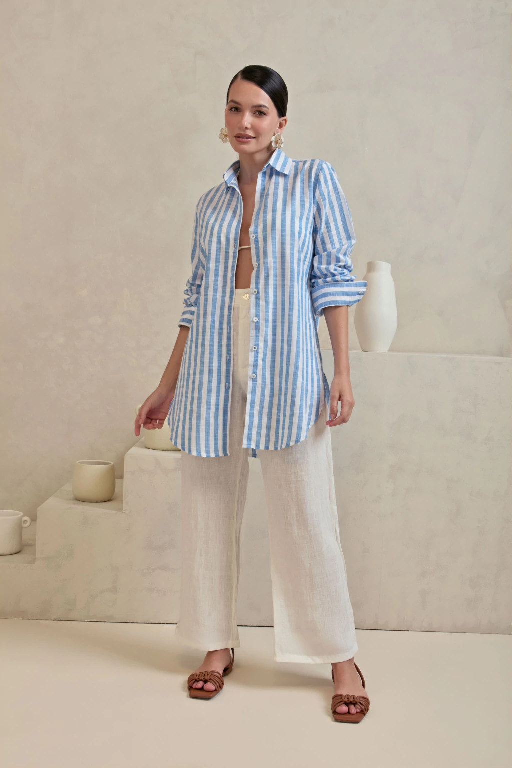 Perfeita para os dias de verão, use como vestido com sandálias ou rasteiras para um visual leve, ou combine aberta sobre top e shorts para um estilo casual e moderno. Também funciona muito bem com calça de alfaiataria para um look mais sofisticado e fresco.